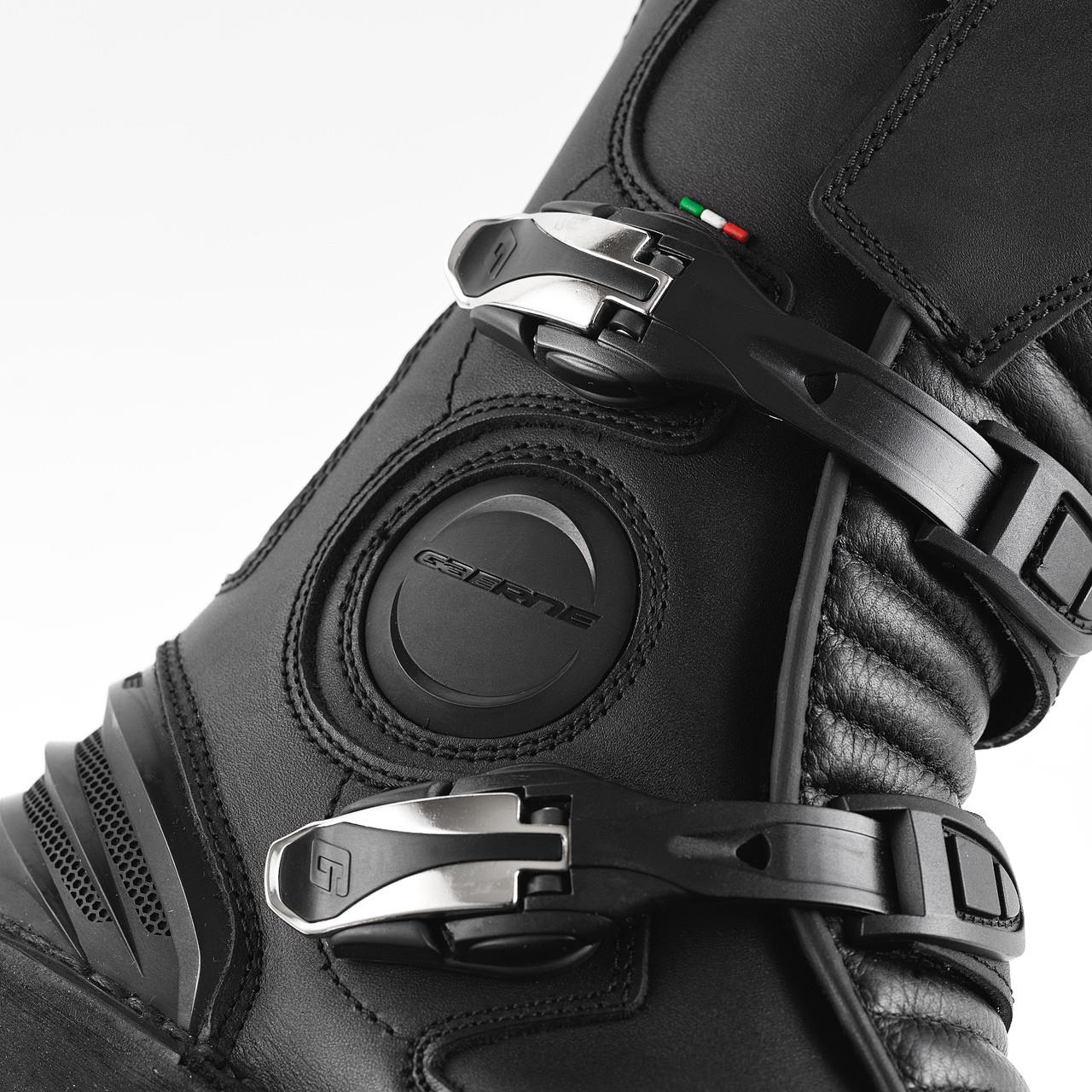G-Midland Gore-Tex Gaerne'nin uzun turlar ve off-road kullanımı için geliştirdiği en yeni ürünü Tüm sezon kullanıcılar için en doğru tercih %100 su geçirmez gore-tex ve deri yapı ayaklarınızın sıcak ve kuru kalmasını sağlar Ayarlanabilir alüminyum çift kapama mandalı Boydan boya velcro bağlantı sabitleme sistemi %100 İtalyan el işçiliği Kaymayı engelleyici taban yapısı