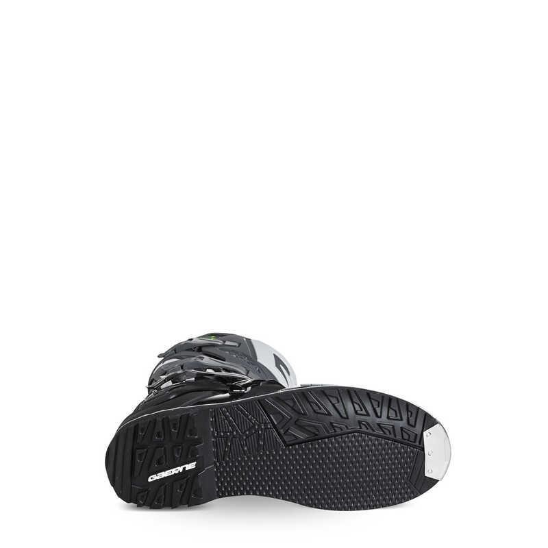Ayarlanabilir kaval koruması, farklı diz koruyucu konfigürasyonlarına uyum sağlar. Grip Guard kauçuk yüzey, motosikletle temas halinde ekstra tutuş ve hassasiyet kazandırır. Dayanıklı alüminyum tokalar hafif yapısıyla güvenli kapanış sunarken, Gaerne Enduro taban olağanüstü yol tutuşu garanti eder.