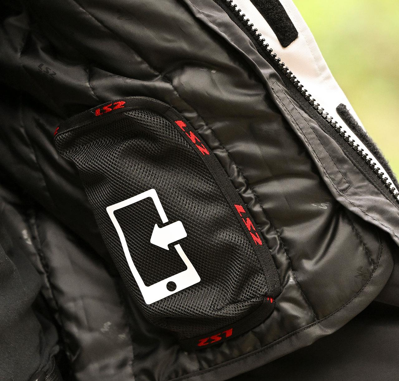 İki dış su geçirmez cep, bir iç telefon cebi, bir arka geniş cep, ek telefon cebi