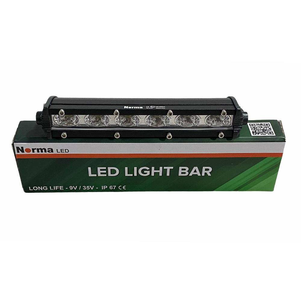 NORMA 18W LED bar, 6 adet yüksek güçlü LED ile donatılmış, yalnızca 18 cm uzunluğundaki ince yapısıyla hem estetik hem de fonksiyonel bir aydınlatma çözümüdür. Arazi araçlarından motosikletlere, iş makinelerinden ATV ve traktörlere kadar pek çok araçta güvenle kullanılabilir. Suya, darbeye ve toza dayanıklı yapısıyla zorlu koşullarda bile üstün performans sunar.