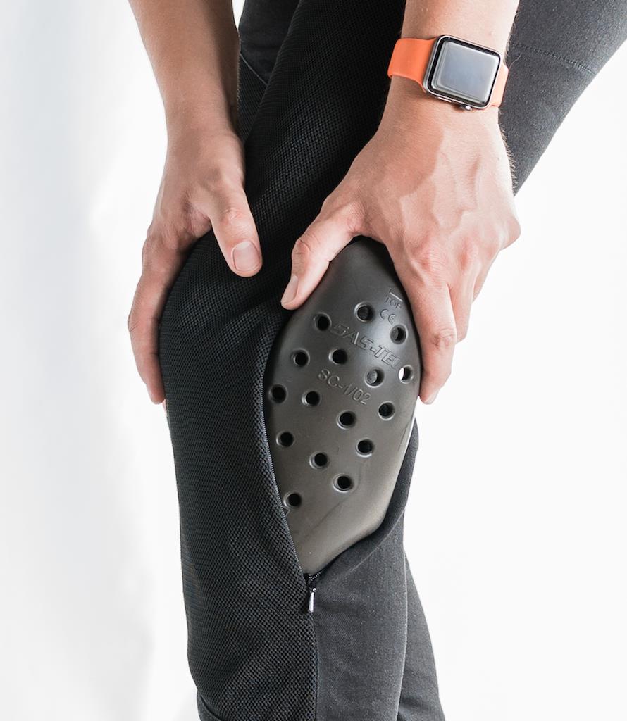 Koruma cepleri dışarıdan erişilebilir şekilde tasarlanmıştır; böylece pantolon günlük kullanımda da rahatça giyilebilir