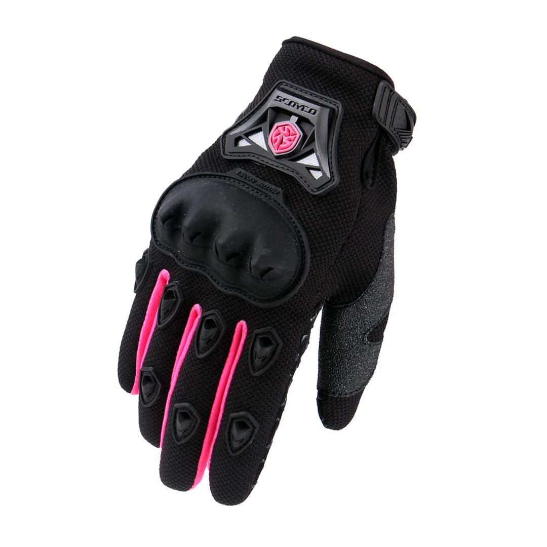 Scoyco Mc29W Kadın Korumalı Eldiven Pembe, kadın sürücüler için özel olarak tasarlanmış, hem konfor hem de güvenlik sunan bir motosiklet eldivenidir. Hafif yapısı ve nefes alabilir kumaşı sayesinde şehir içi sürüşlerde rahat kullanım sağlar.