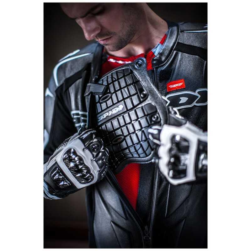 SPIDI WARRIOR CHEST GÖĞÜS KORUMA Özellikler : Spidi'nin güvenlik alanındaki çabaları, şirketin bir göğüs koruyucusunu sertifikalandırmasını sağladı, SPIDI'nin Warrior Chest'i seviye 1 prEn 1621-3 olarak düzenlenmiştir . Warrior teknolojisi, şoku yaymak için tasarlanmış kare blok yapısı şeklinde 3 katmandan oluşur 21,8 Kn şok emici değer (prEn 1621-3 testini geçer) 644 metrekare/cm koruyucu tarafından kaplanan alan Biyomekanik bağlantılar göğsün morfolojisine uyum sağlayabilir - bu aynı zamanda koruyucunun saklanması için kolay katlanmasını sağlar Maksimum kalınlık 15 mm'dir (aerodinamik ve konforu garanti eder) Geniş hava delikleri sayesinde mükemmel hava sirkülasyonu 140g ağırlık