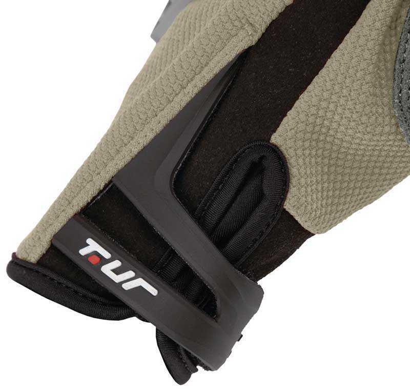 TUCANO T.UR G-THREE Mafsallara  doğrudan kauçuk enjeksiyonlu, elastikleştirilmiş 4 yollu streç jarse? Sırt bölümünde yansıtıcı paneller Avuç içi korumalar Maksimum tutunma için özel avuç içi slikon kaplamalar Daha fazla konfor için likralı Fourchette Dokunmatik ekran uyumluluğu EN 13594: 2016-CE motosiklet sertifikası