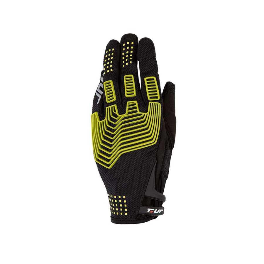 TUCANO T.UR G-THREE Mafsallara  doğrudan kauçuk enjeksiyonlu, elastikleştirilmiş 4 yollu streç jarse? Sırt bölümünde yansıtıcı paneller Avuç içi korumalar Maksimum tutunma için özel avuç içi slikon kaplamalar Daha fazla konfor için likralı Fourchette Dokunmatik ekran uyumluluğu EN 13594: 2016-CE motosiklet sertifikası