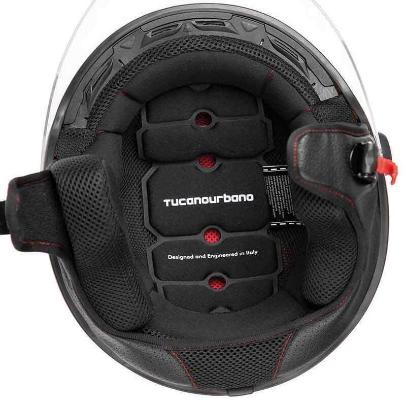 TUCANO URBANO EL JETTIN  Ağırlık: 1080 gr +/- 50 gr ECE 22.05 onaylı  jet kask EMNİYET Son teknoloji termoplastik Polikarbonat kabuk Yüksek darbe emiliminde iç, çift yoğunluklu EPS Mikrometrik kilitli ve Hızlı açılabilir Sistemli kayış Sınıf A onaylı Polikarbonat çizilmez şeffaf vizör Çizilmez silikon vizör kapağı Koyu dış vizör - Yalnızca gündüz kullanımı (ayrı satılır) KONFOR İç dikişleri azaltmak için yenilikçi lüks ısıyla şekillendirilmiş tasarım Nefes alabilen, hipoalerjenik mikrofiber, Aero 3D ağ ekleri ile Çıkarılabilir ve yıkanabilir Yaz aylarında kullanım için çıkarılabilir ve yıkanabilir yanak yastıkları Kulakların çevresinde geniş ve rahat alan Mükemmel nefes alabilirlik ve daha fazla konfor için delikli eko deri ve Aero 3D örgü boyun rulosu Küçük fit oval tasarım
