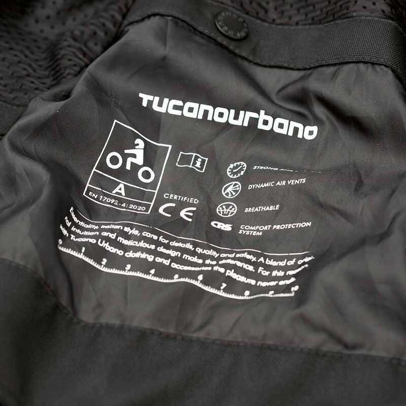 TUCANO URBANO NETWORK 3G YAZLIK CEKET EN17092 direktifine uygun CE/UKCA sertifikalı A Sınıfı motosiklet ceketi Motosiklet kullanıcılarının hareketlerini sınırlamadan aşınmaya ve darbeye karşı uygun koruma sağlar. Klasik motosiklet stili file ceket Yüksek mukavemetli Polyester Oxford ilaveler Hafif file astar CPS: EN1621-1 CE uyumlu omuz ve dirsek korumaları Sırt koruma takılmaya uygun cep Filenin altında gizlenmiş yansıtıcı şerit Etek, kol ve manşetlerde ayarlamalar Yakıt deposunu çizmeyen çift kanatlı fermuar Ekstra büyük arka cep Farklı boyda iç ve dış cepler Pantolon kemerine bağlantı Uzunluk 69 cm (50 beden - L)
