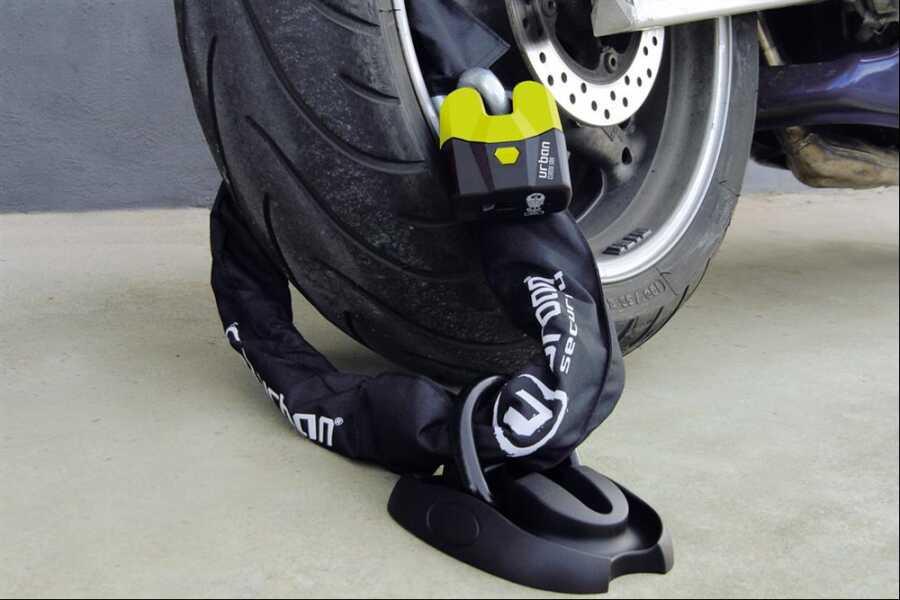 KİLİT GÜVENLİK SEVİYESİ: 20 U8K150 - 150cm. Zincir ø15 + Asma kilit ø15. Testere, kesme, çekiç, kaldıraca karşı onaylanmış ve test edilmiş özel ø15 zincir ... Motosikletinizin boyasına zarar vermemek için kumaş örtü.