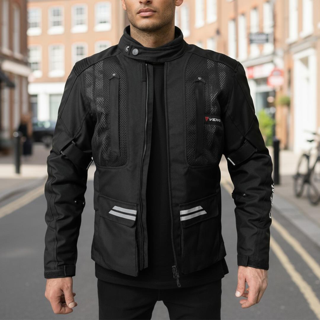 Venom Tourex 4 Mevsim Motosiklet Montu, her hava koşuluna uyum sağlayan dayanıklı, su ve rüzgar geçirmez yapısıyla tasarlanmıştır. 600D sürtünmeye dayanıklı kumaşı uzun ömürlü kullanım sunarken, çıkartılabilir termal iç astarı sayesinde yaz ve kış sürüşlerinde konfor sağlar.