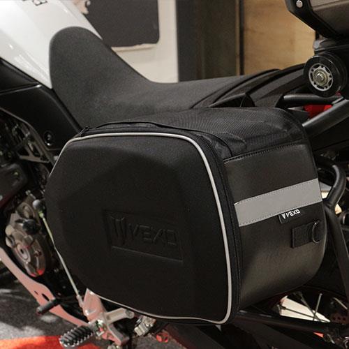 VEXO?nun yenilikçi 3D kalıplama teknolojisiyle geliştirdiği V32 yan çanta seti, motosikletin çizgilerine uyum sağlayan sportif tasarımıyla dikkat çeker. Sertleştirilmiş dış kabuğu sayesinde yüksek süratlerde formunu bozmayan bu çantalar, genişletilebilir yapısıyla hem kısa hem de uzun yolculuklar için esnek depolama çözümleri sunar.